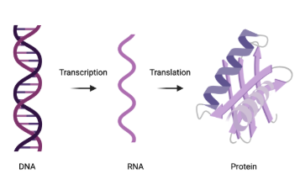 Within every cell, proteins are busy at work. They are synthesizing energy, carrying cargo from one cell to another, altering gene expression, and conducting so many other functions. Proteins are large molecules that are made up of amino acids and are the building blocks for all organisms. The central dogma of molecular biology is a fundamental biological concept that describes the flow of genetic information where DNA (deoxyribonucleic acid) transcribes into RNA (ribonucleic acid), which then translates into proteins (Figure 1). Since its establishment in the 1950s by scientists Watson and Crick, the central dogma’s function has been discovered to be far more complicated than the unidirectional schematic shown in Figure 1. With the discovery of the proteins responsible for making the central dogma flow as it does, came a new understanding of how the central dogma is altered in human disease. Whether a disease arises from a dysfunctional protein or a single nucleotide polymorphism (SNP) mutation (a mutation in DNA where one of the four DNA building blocks switches to another) – the central dogma is behind it all.