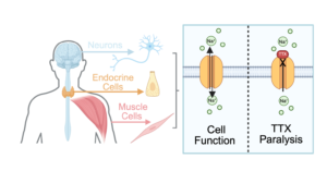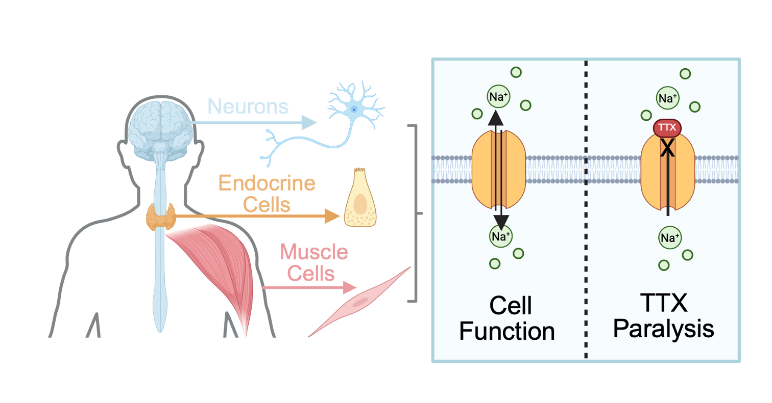To get an idea for why TTX poisoning is not yet directly treatable with an antivenom, one should take a closer look at how it actually works in the body. TTX works by blocking our voltage-gated sodium channel proteins (Na channel proteins for short). These proteins allow charged particles to cross through our cell membranes, resulting in a voltage difference that excites our cells. This process is what allows muscle cells to contract, endocrine cells to release hormones, and neurons to send signals to and from our brains. Because TTX blocks Na channels that are primarily located in the central nervous system, TTX is classified as a neurotoxin and as such, can ultimately result in deadly paralysis.